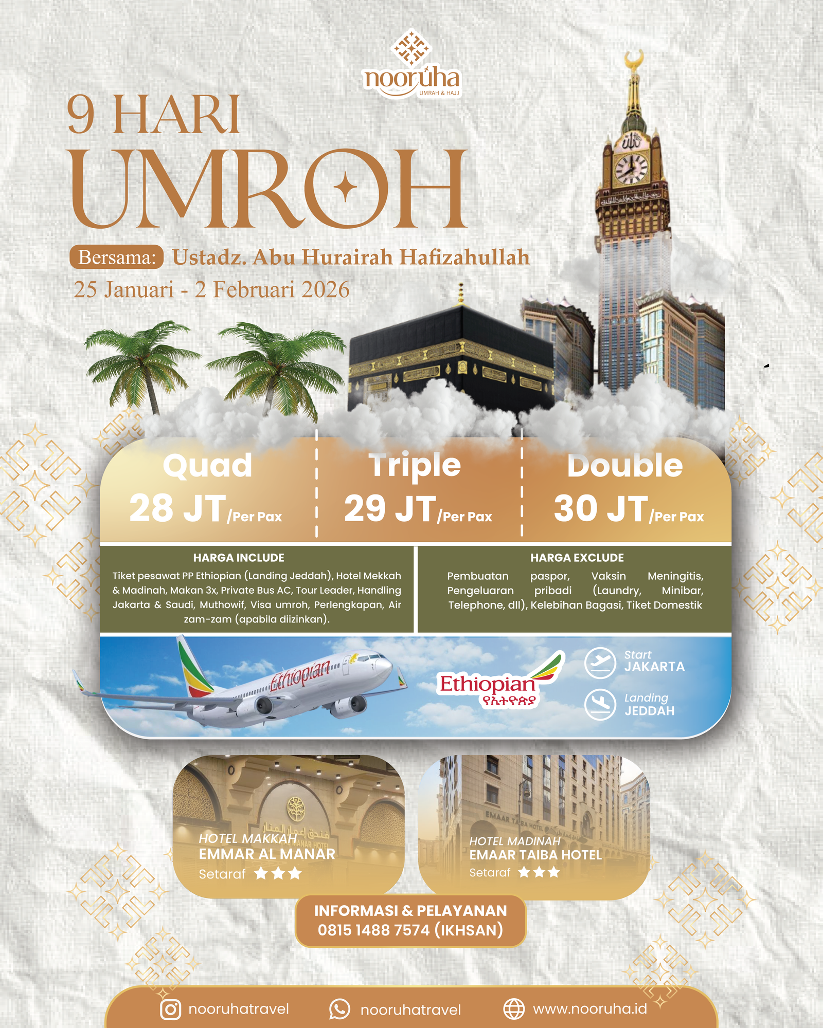 Umroh Januari 2026 Besama Ustadz Abu Hurairah Hafidzahullah