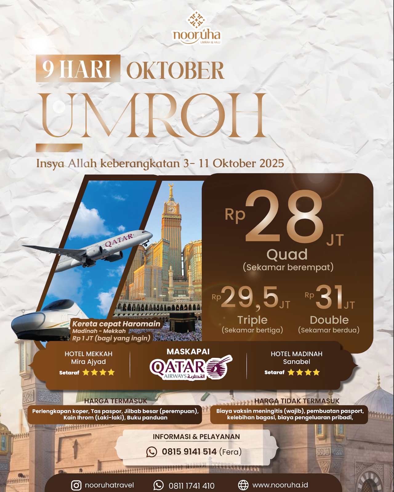 Umroh Musim Semi 03 Oktober 2025 Sisa 10 Seat